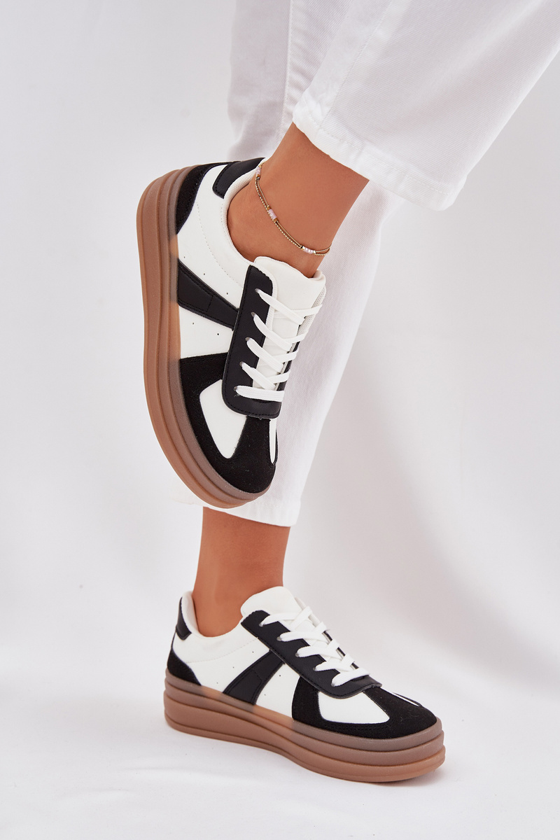 Sneakesy Damskie Na Platformie Biało-Czarne Sivirae