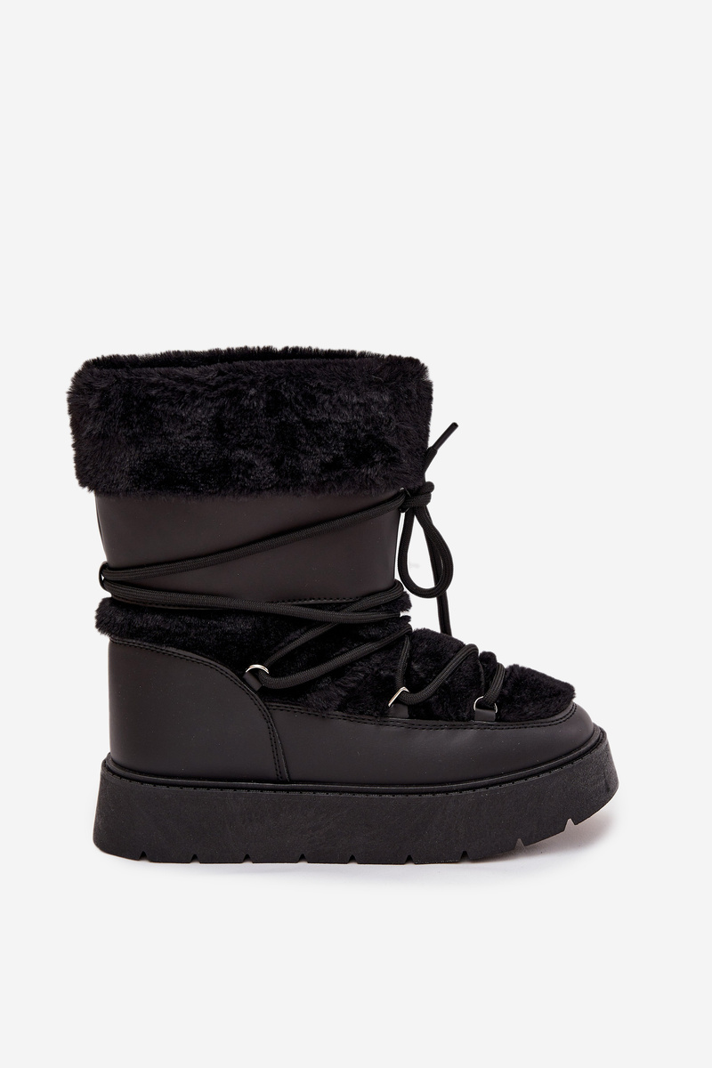 Śniegowce Damskie Z Futerkiem I Wiązaniem Na Platformie Czarne Marinna