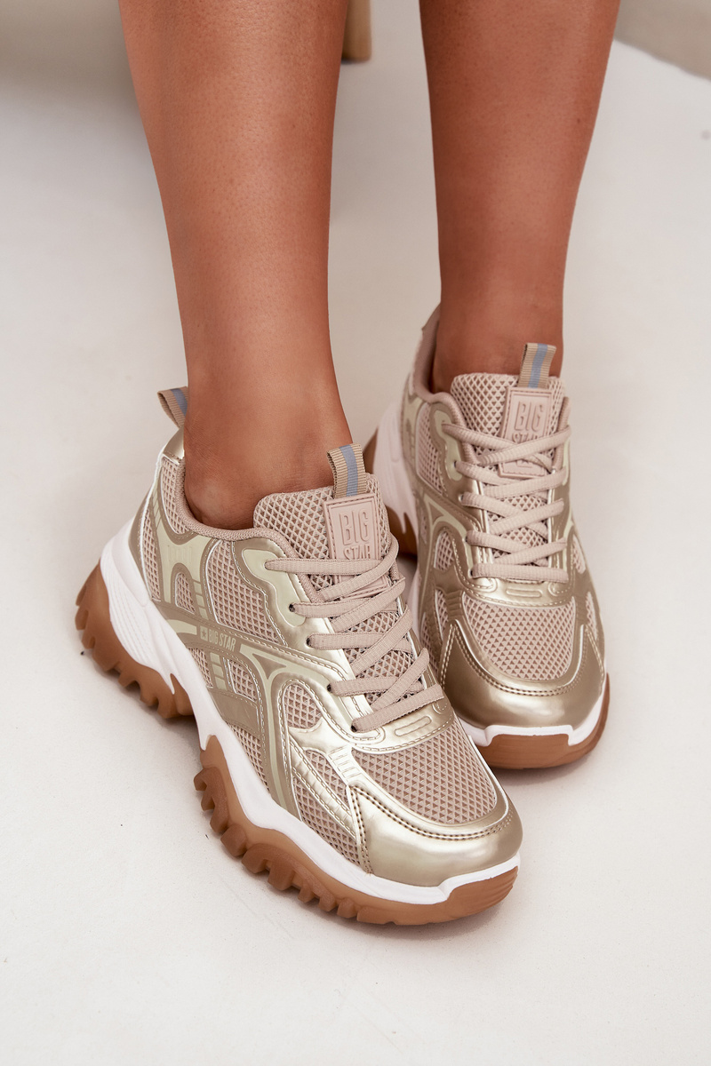 Buty Sportowe Sneakersy Damskie Big Star SS274014 HI-POLY SYSTEM Beżowo-Złote