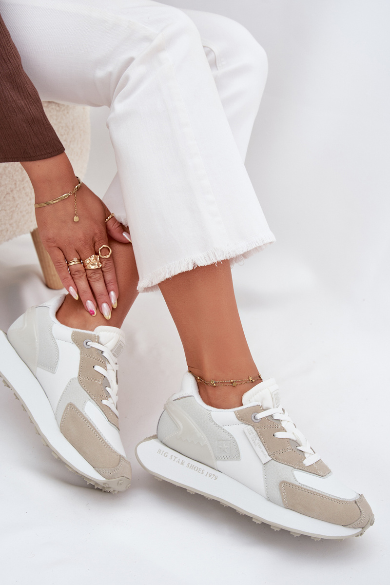 Skórzane Sneakersy Damskie Big Star OO274563 Hi-Poly System Białe