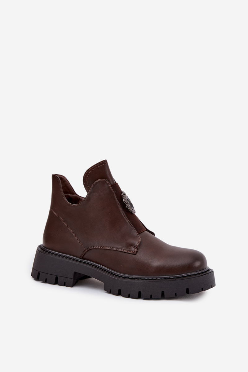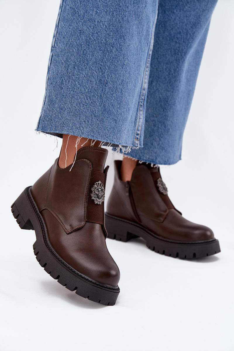 Ocieplane Niskie Botki Damskie Z Ozdobą Na Zamek Brązowe Lavira