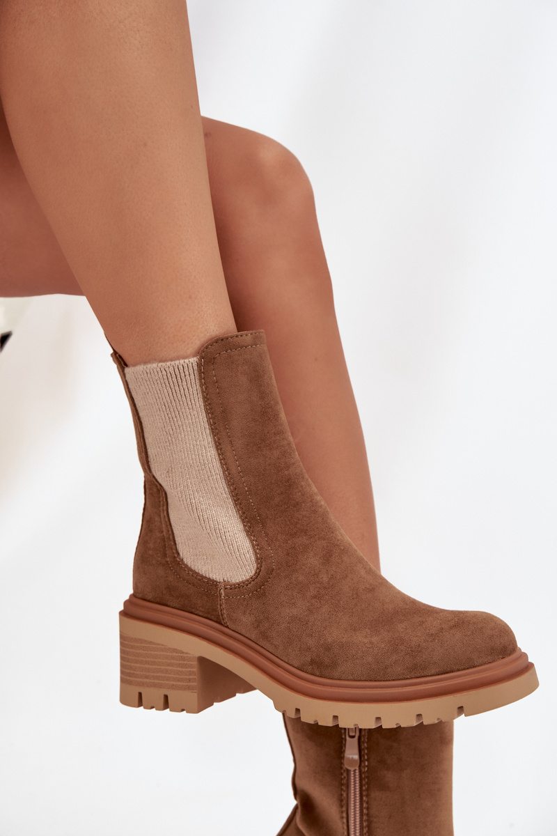 Botki Sztyblety Damskie Ocieplane Na Klocku Ciemnobeżowe Zoralia