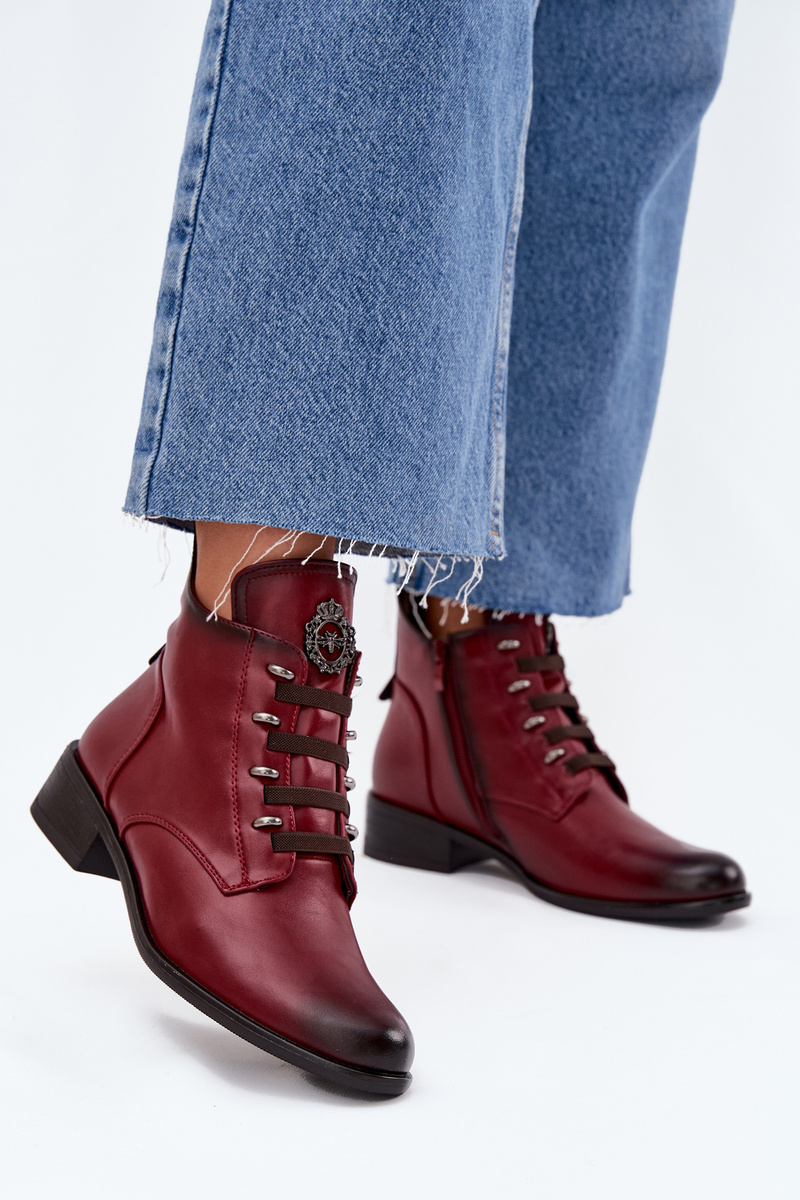 Niskie Botki Ocieplane Na Zamek Z Ozdobą Bordowe Nevalia