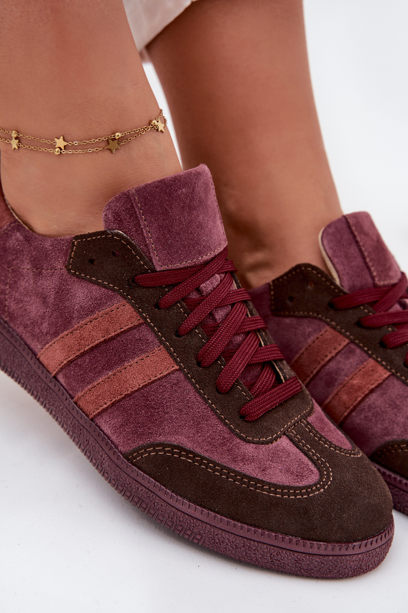 Zazoo N1068 Zamszowe Niskie Sneakersy Damskie Bordowe