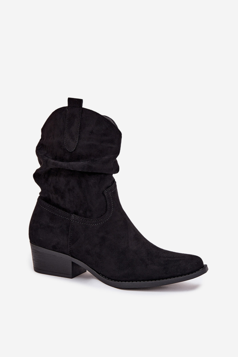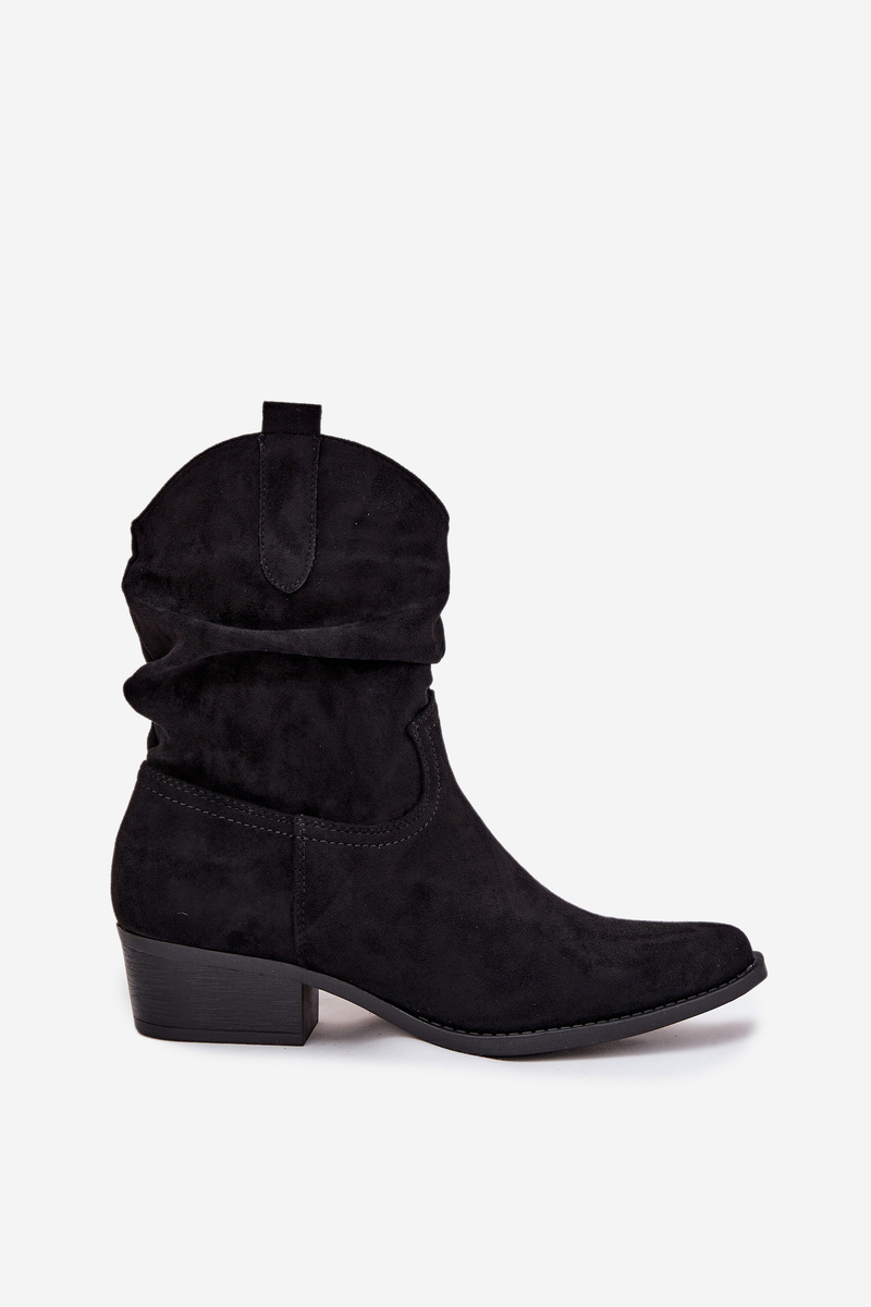 Botki Damskie Na Niskim Obcasie Z Marszczeniem Czarne Adena