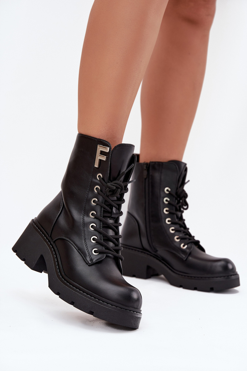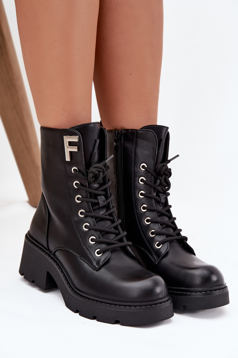 Botki Workery Damskie Na Klocku Ocieplane Z Literą F Czarne Lurina