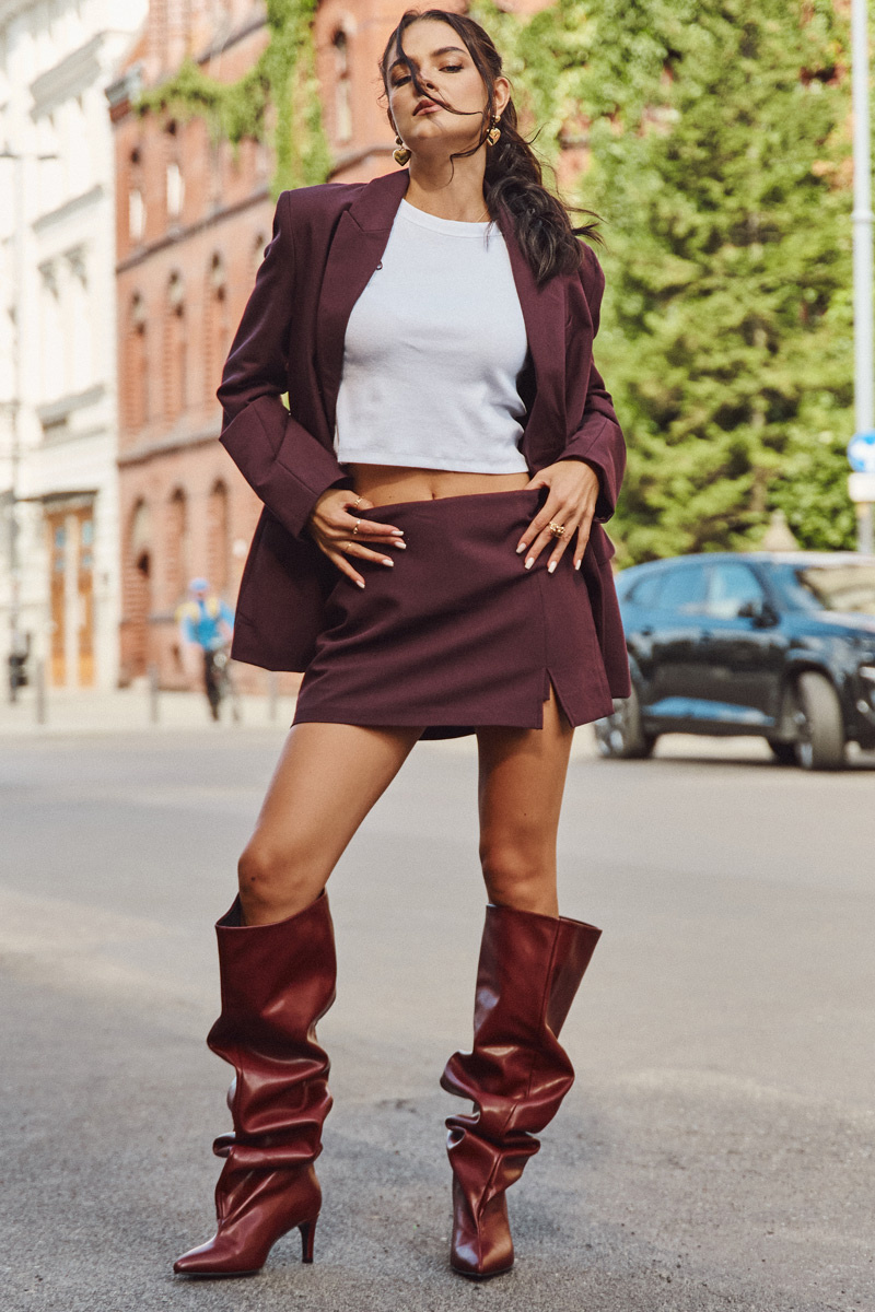 Kozaki Damskie Na Szpilce Wsuwane Bordowe Mavilla