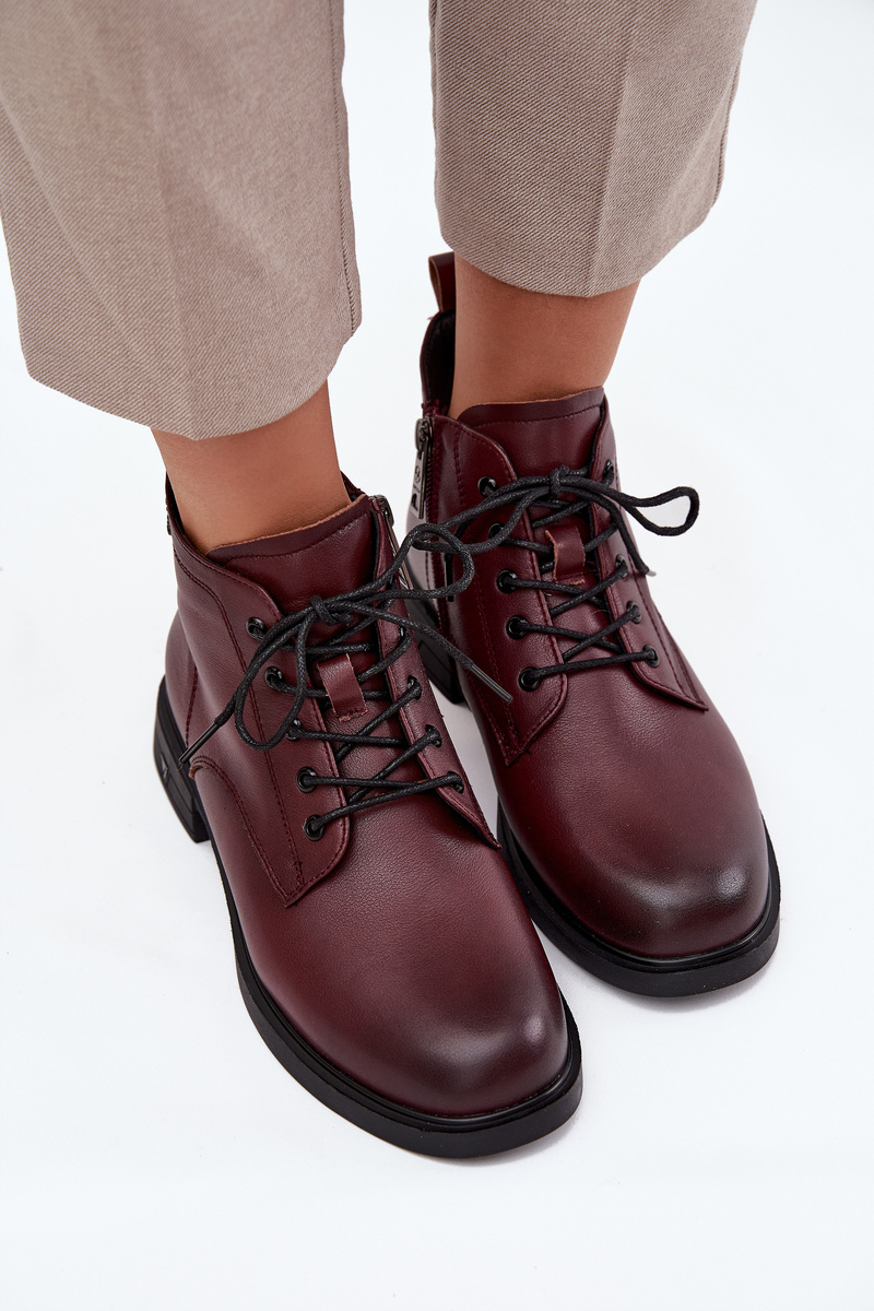 Ocieplane Skórzane Botki Damskie Na Niskim Obcasie Vinceza 39953 Bordowe