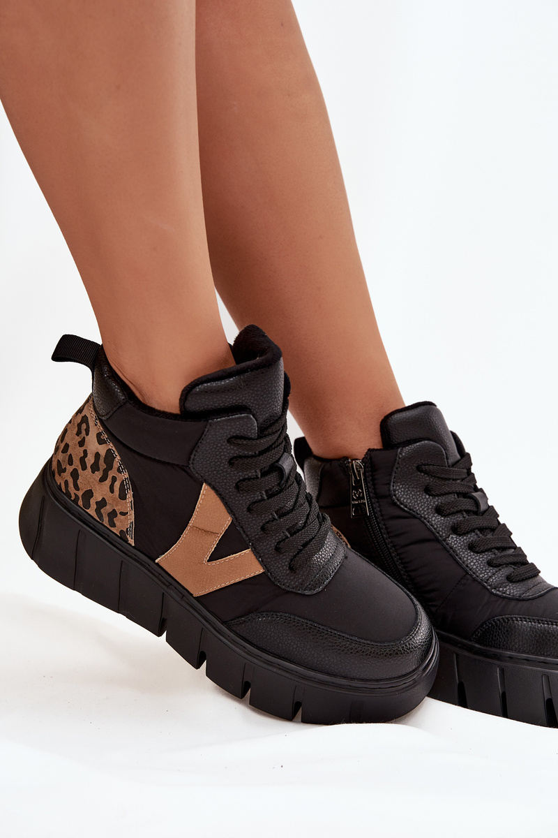 Skórzane Botki Damskie Na Platformie Ocieplane Vinceza 66838 Czarne