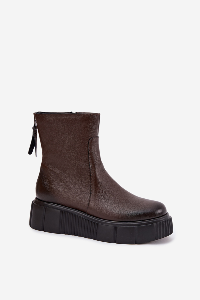 Zazoo 60369 Damskie Skórzane Botki Na Platformie Czekoladowe