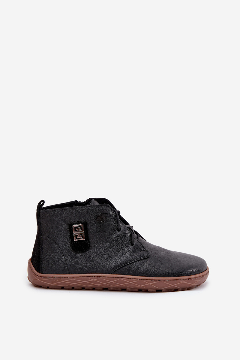 Skórzane Półbuty Barefoot Damskie Z Ozdobnym Detalem Zazoo 30072 Czarne
