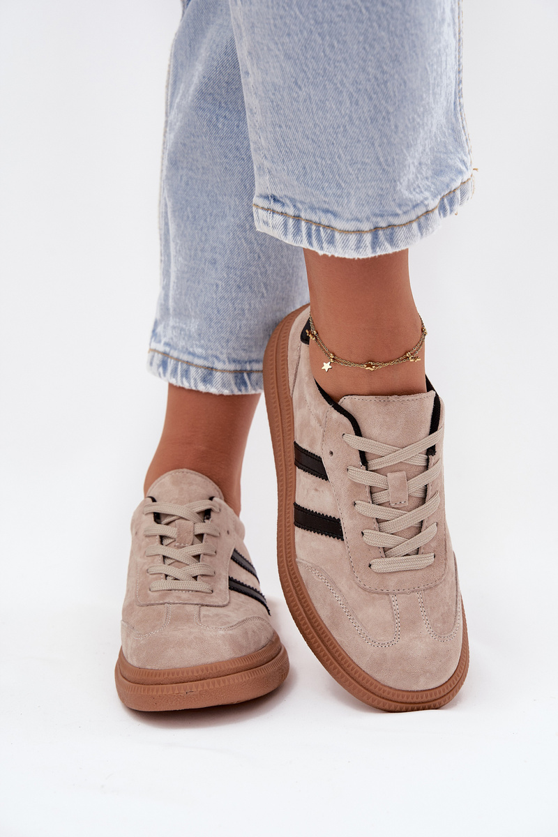 Zamszowe Sneakersy Damskie Na Platformie Beżowe Elivienne