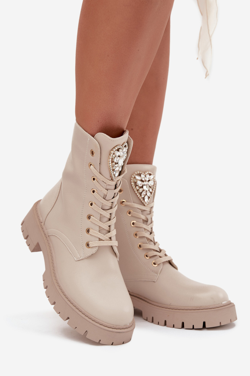 Botki Workery Damskie Z Kryształkami Na Języku Jasnobeżowe Rosira