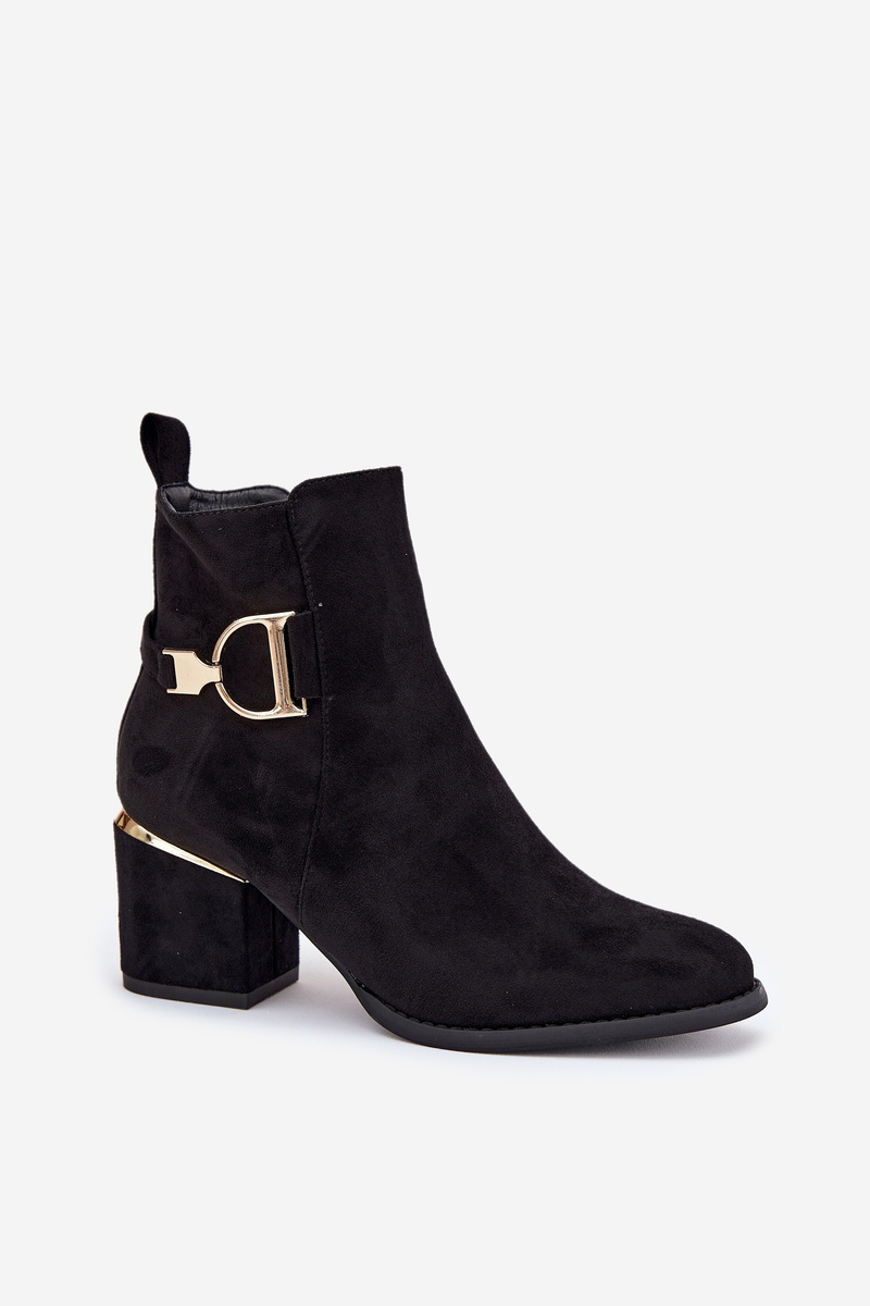 Ocieplane Botki Damskie Na Słupku Ze Złotymi Elementami Czarne Ambrine