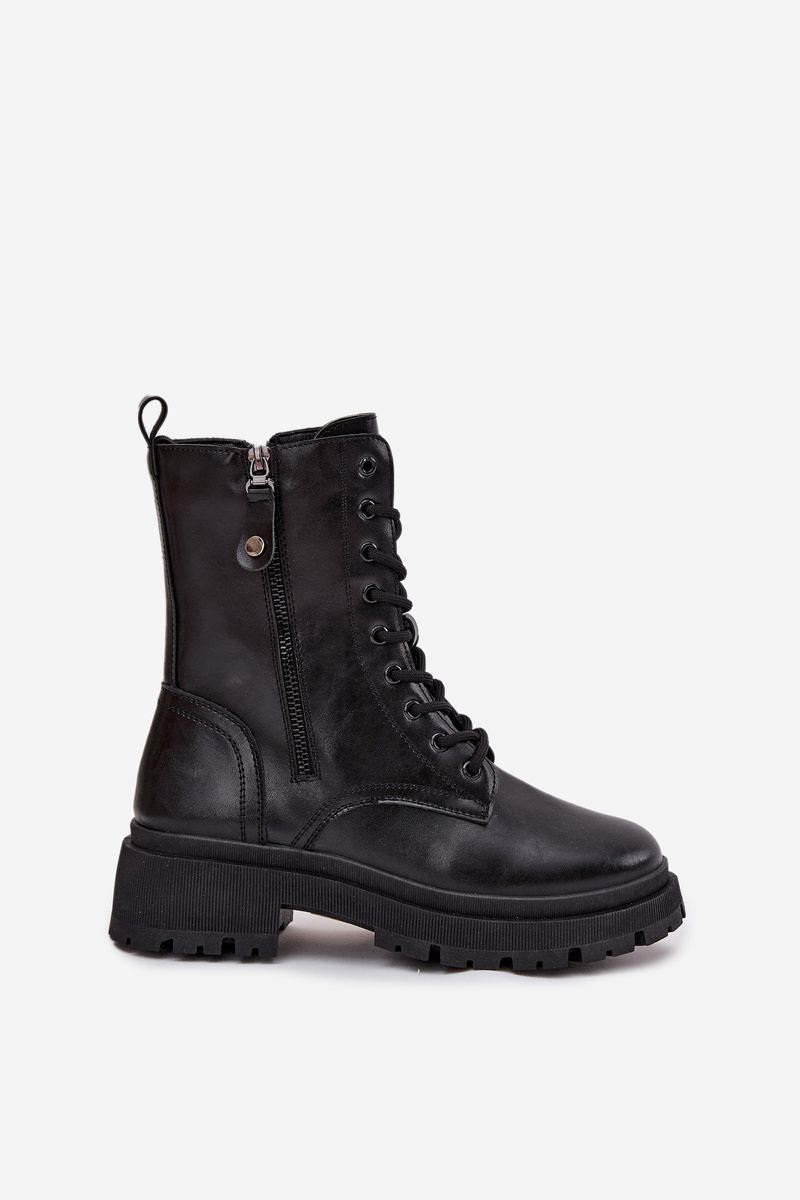 Botki Workery Damskie Ocieplane Z Podwójnym Zamkiem Czarne Perlina