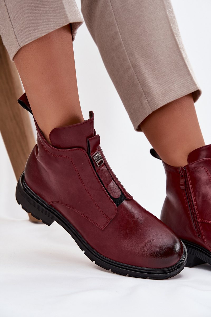 Ocieplane Botki Damskie Na Zamek Z Ozdobnym Detalem Bordowe Roselle