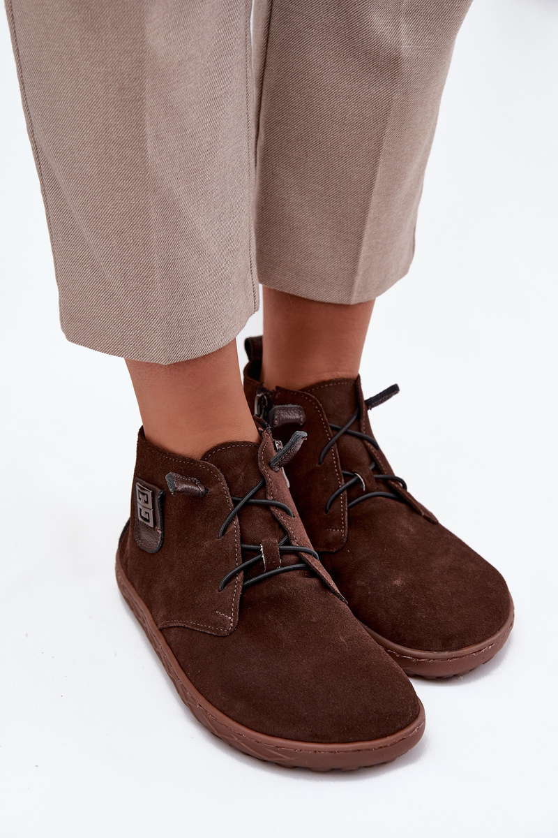 Zamszowe Półbuty Barefoot Damskie Z Ozdobnym Detalem Zazoo 30072 Czekoladowe