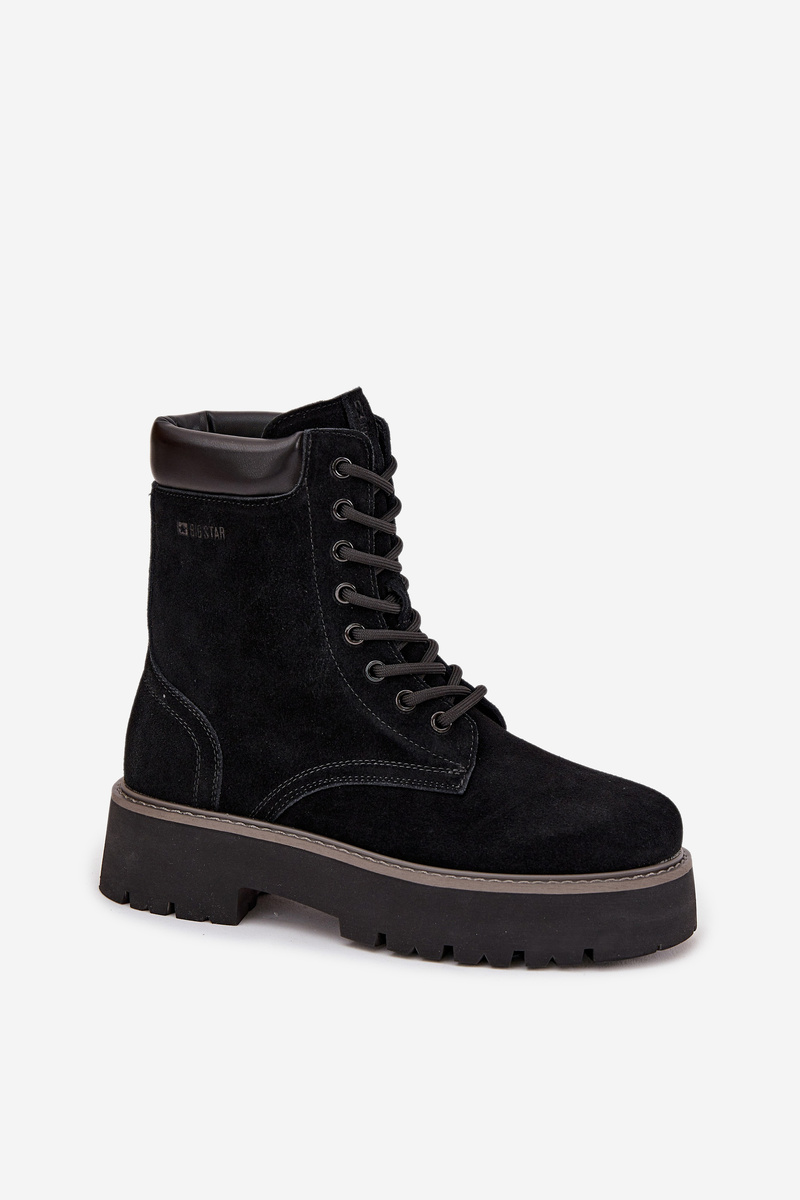 Zamszowe Botki Workery Damskie Sznurowane Big Star SS274791 Czarne