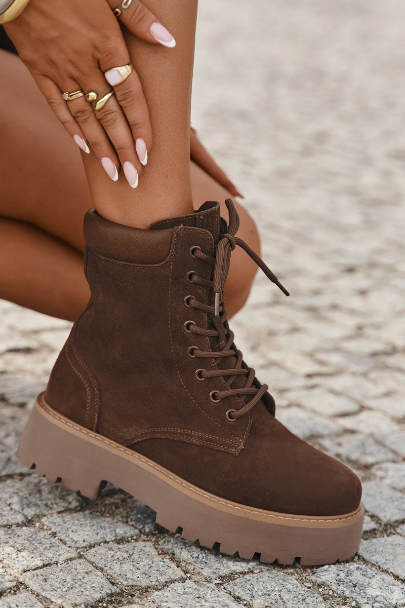 Zamszowe Botki Workery Damskie Sznurowane Big Star SS274792 Brązowe