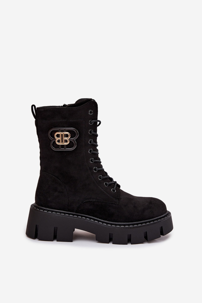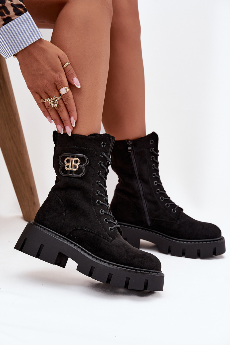 Ocieplane Botki Wokrery Damskie Z Ozdobą Czarne Melisse