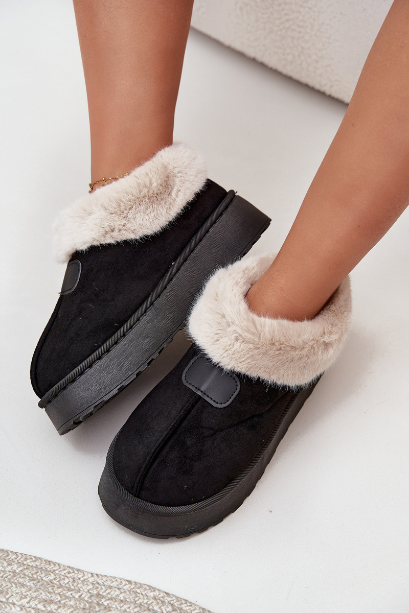 Śniegowce Damskie Na Platformie Z Futerkiem Czarne Calyra