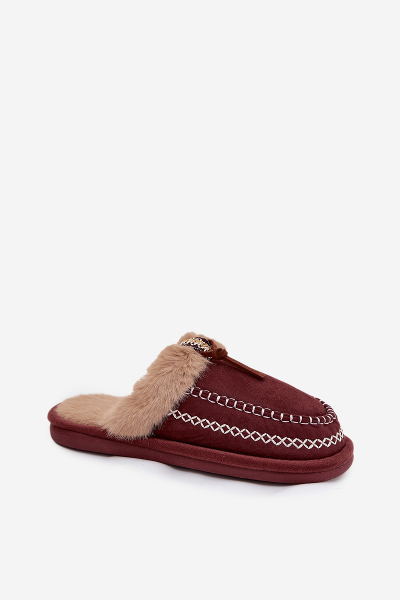 Kapcie Damskie Z Futerkiem I Haftem Bordowe Perivelle