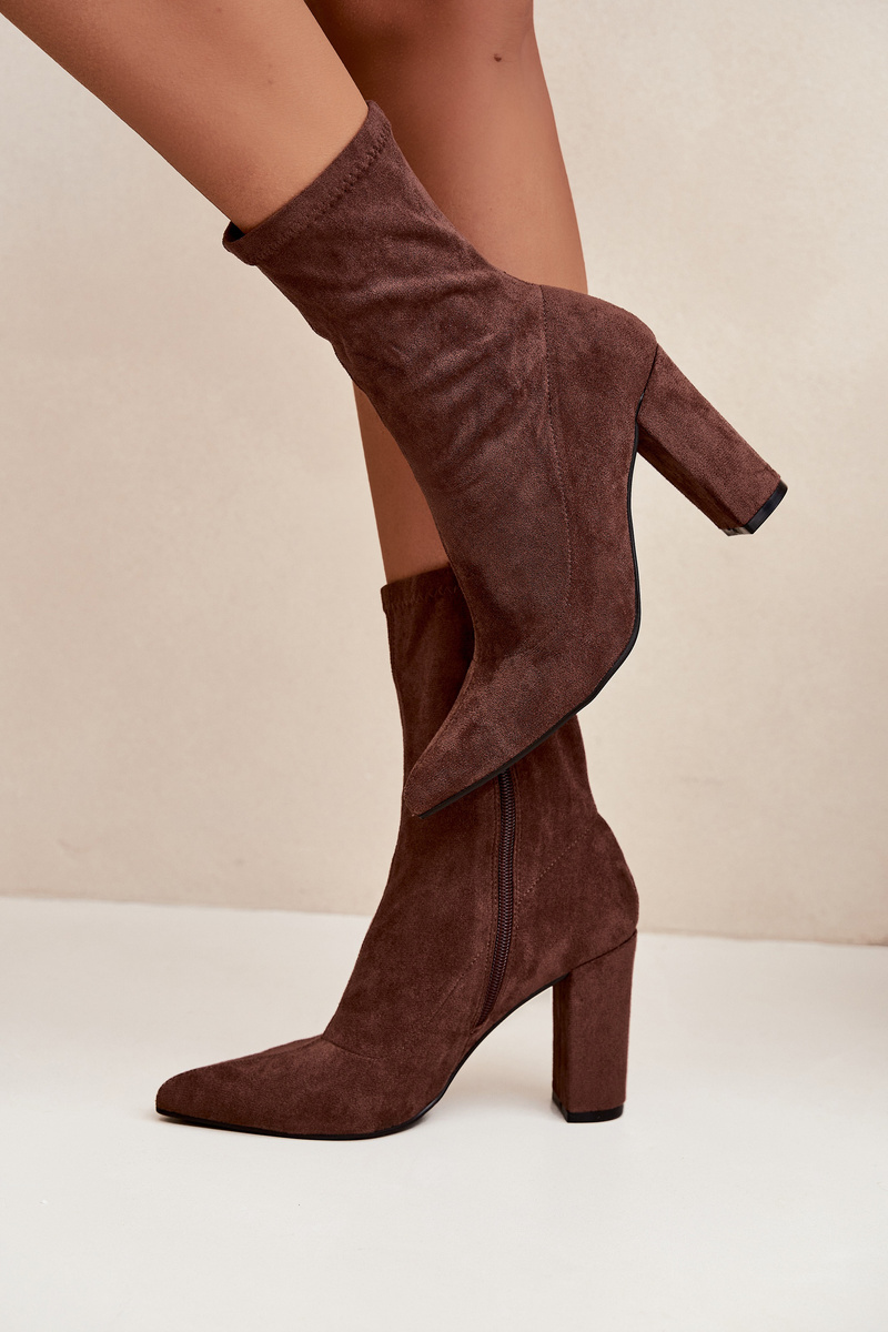 Botki Damskie Na Słupku Z Przeszyciami Brązowe Rosivelle