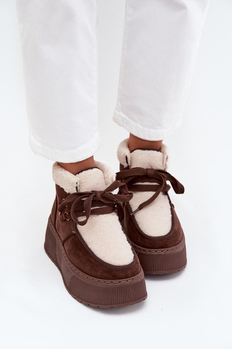Śniegowce Damskie Na Platformie Z Futerkiem Brązowe Florivelle