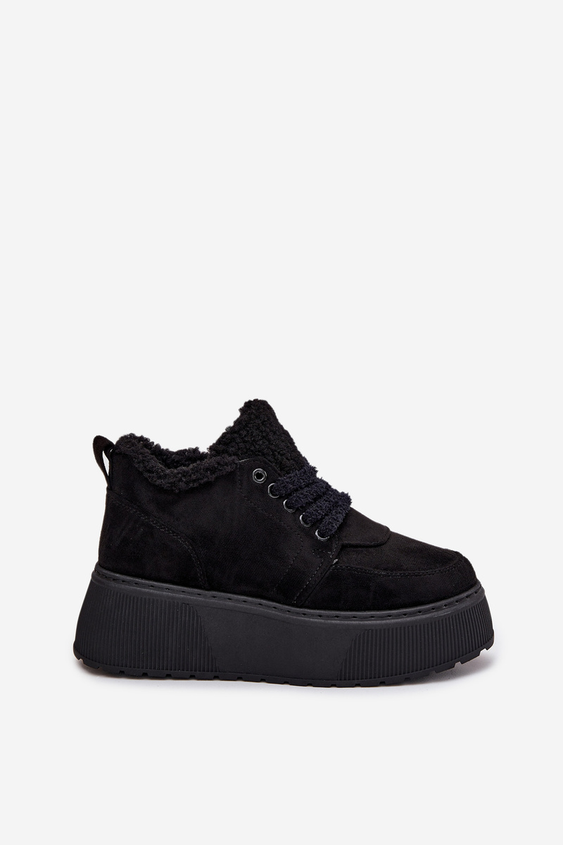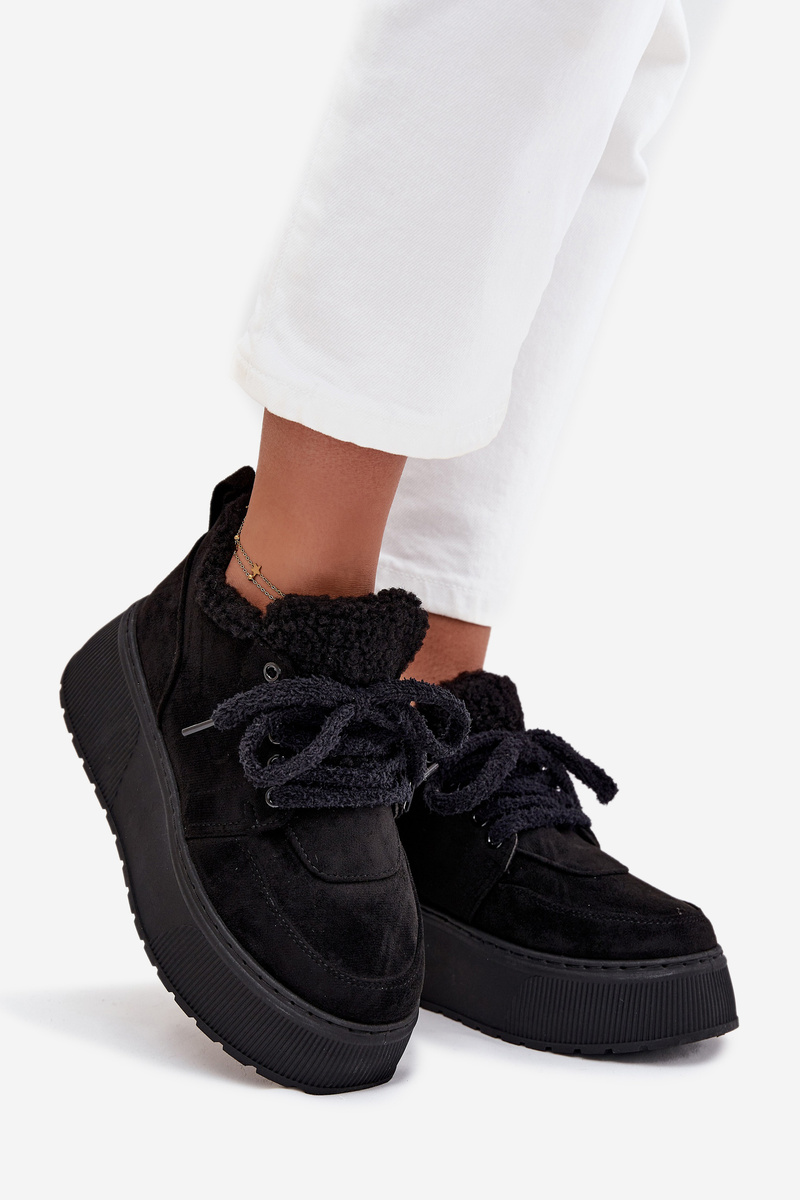 Śniegowce Damskie Na Platformie Z Futerkiem Typu Baranek Czarne Luma