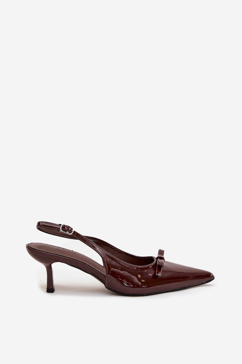 Lakierowane Czółenka Na Szpilce Z Kokardką Czekoladowe Olvena