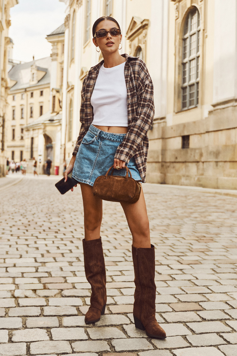 Kozaki kowbojki damskie to modny model inspirowany westernowym stylem, który doskonale wpisuje się w aktualne trendy. Wykonane z miękkiego eko zamszu prezentują się stylowo i elegancko, a jednocześnie są lekkie i wygodne w noszeniu. Osadzone na stabilnym obcasie wysmuklają sylwetkę, a szpiczaste noski dodają całości charakteru i podkreślają kobiecy styl. Model zapinany jest na praktyczny zamek, co ułatwia zakładanie i zdejmowanie butów. Subtelne przeszycia i wyrazisty fason sprawiają, że kozaki te świetnie łączą się zarówno z jeansami i skórzaną kurtką, jak i z sukienkami czy spódnicami, nadając stylizacji wyjątkowego charakteru. To propozycja dla kobiet, które cenią wygodę, modny design i niebanalne akcenty w codziennych zestawach. Przy wyborze rozmiaru prosimy sugerować się poniższą tabelą rozmiarów.