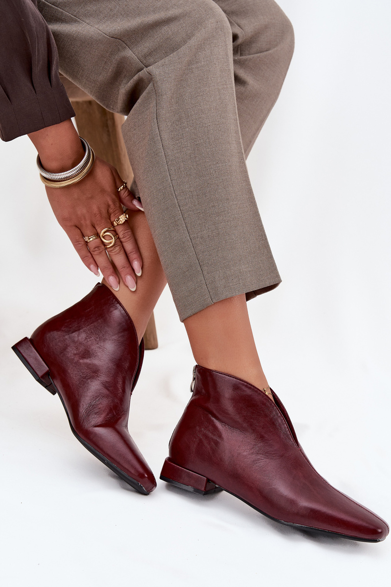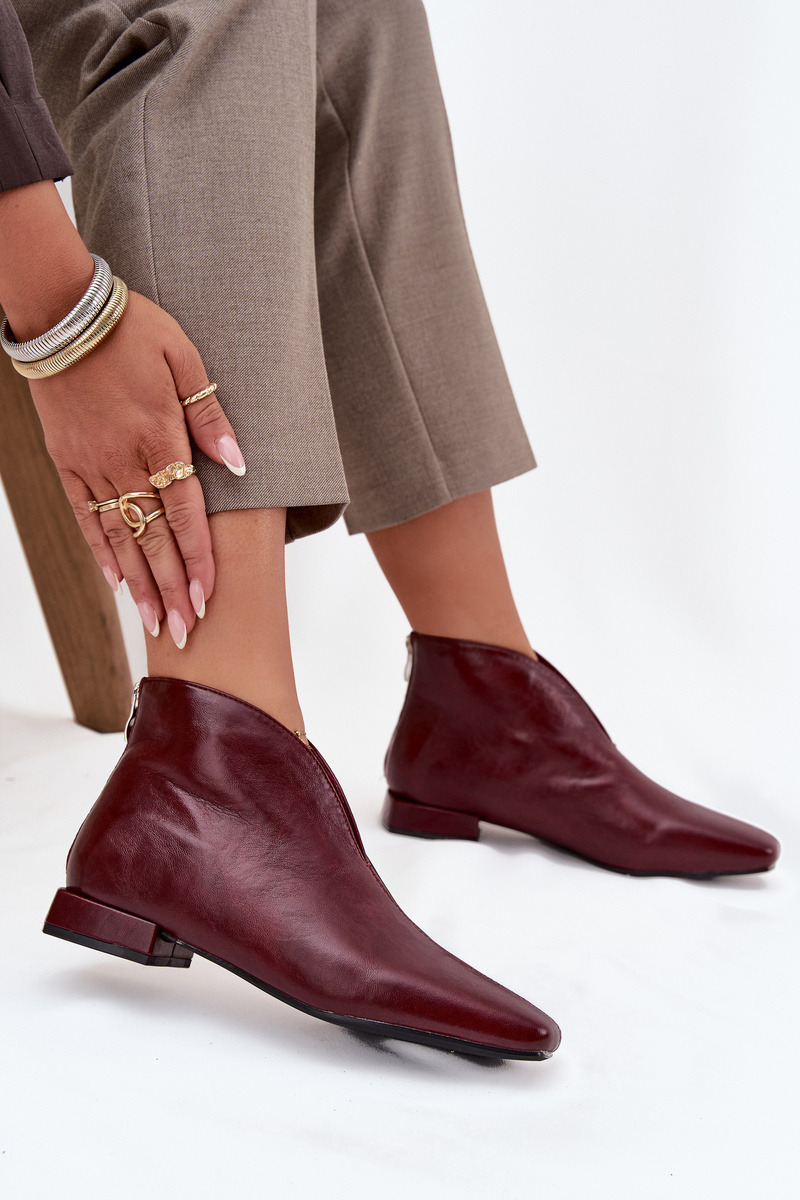 Botki Damskie Na Delikatnym Obcasie Bordowe Elvienne