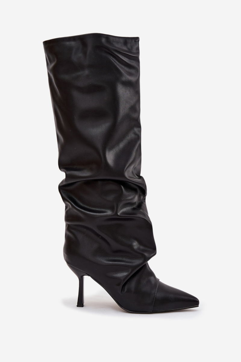 Ocieplane Wsuwane Kozaki Damskie Na Szpilce Z Marszczeniem Czarne Angelica