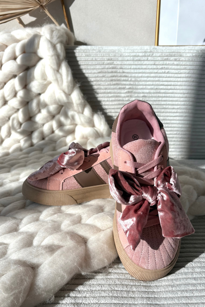 Sneakersy Damskie Z Welurową Kokardą Różowe Ashlyn