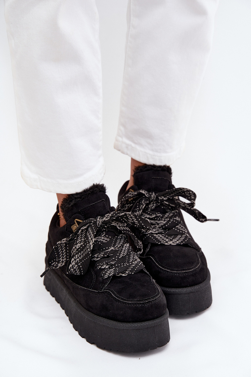 Sznurowane Śniegowce Damskie Na Platformie Ocieplane Futerkiem Czarne Tavelle