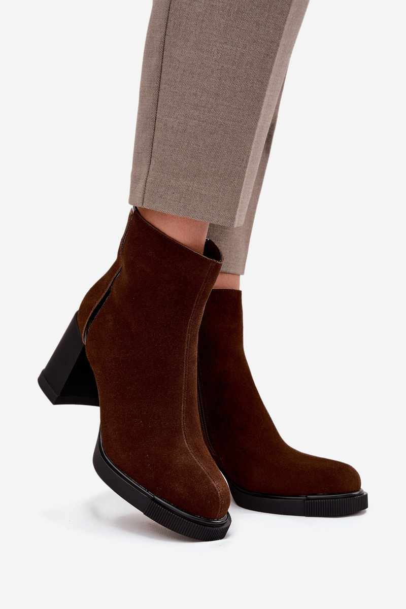 Botki Damskie Z Naturalnego Zamszu Na Słupku Ocieplane Vinceza 91141 Brązowe