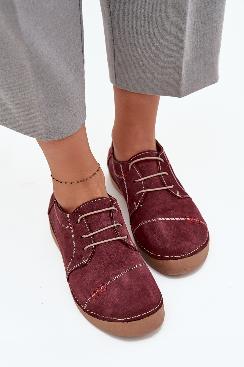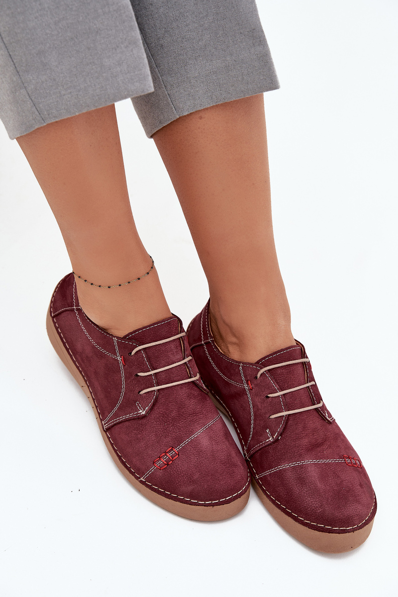 Skórzane Półbuty Damskie Z Przeszyciami Artiker 57C2111 Bordowe
