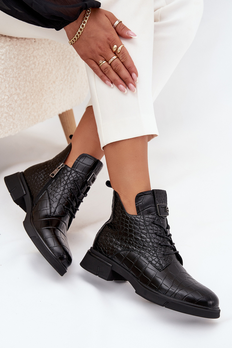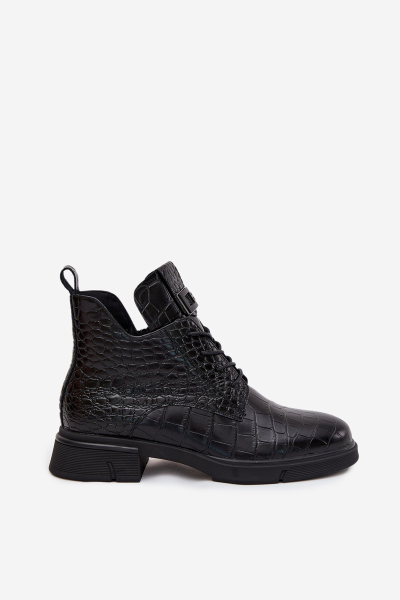 Skórzane Botki Z Ozdobnym Tłoczeniem Ocieplane Vinceza 66815 Czarne