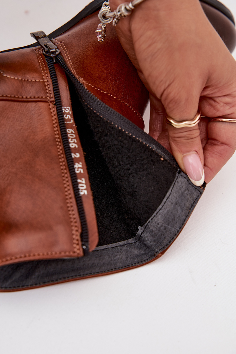 Skórzane Botki Damskie Na Obcasie Z Klamrą Zazoo 60562 Brązowe