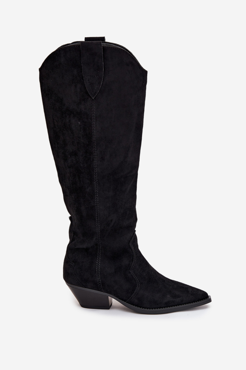 Ocieplane Kozaki Kowbojki Na Obcasie Z Eko Zamszu Czarne Jovianne