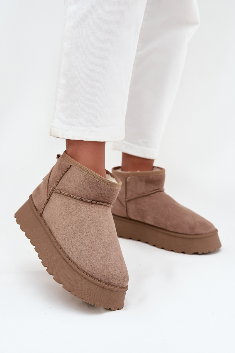 Śniegowce Damskie Na Platformie Ciemnobeżowe Celyra