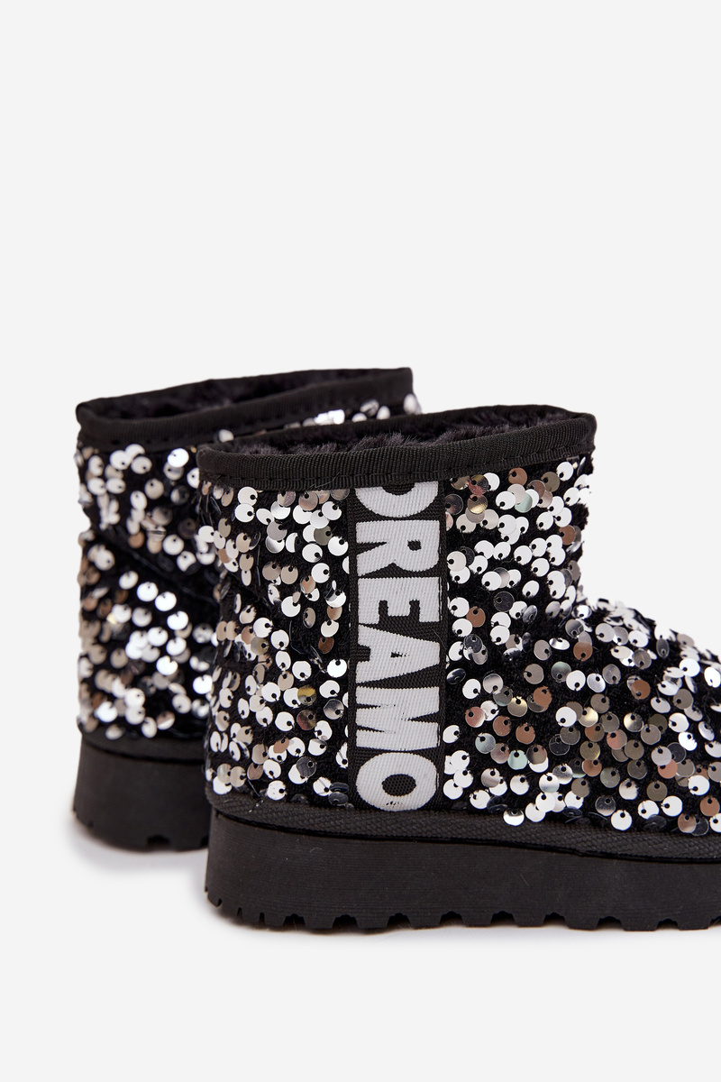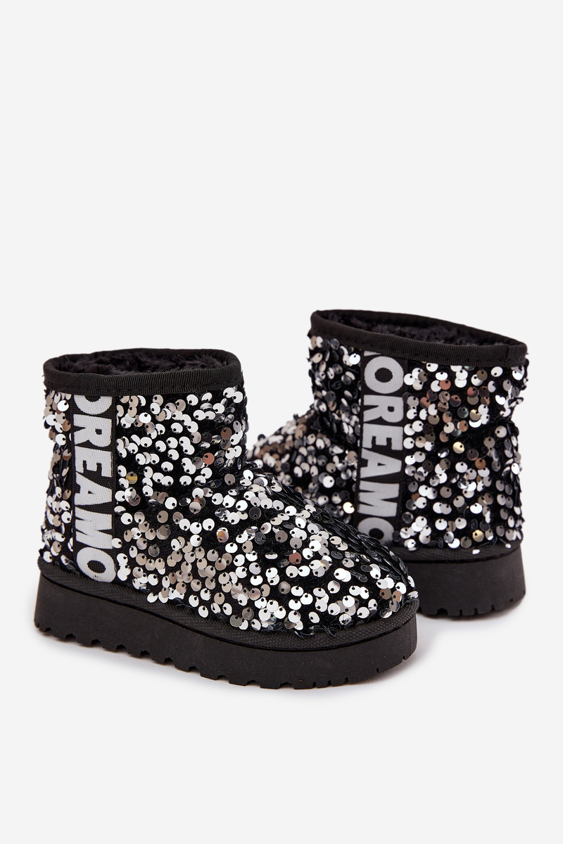 Dziecięce Śniegowce Botki Ocieplane Z Cekinami Czarno-Srebrne Rebbica