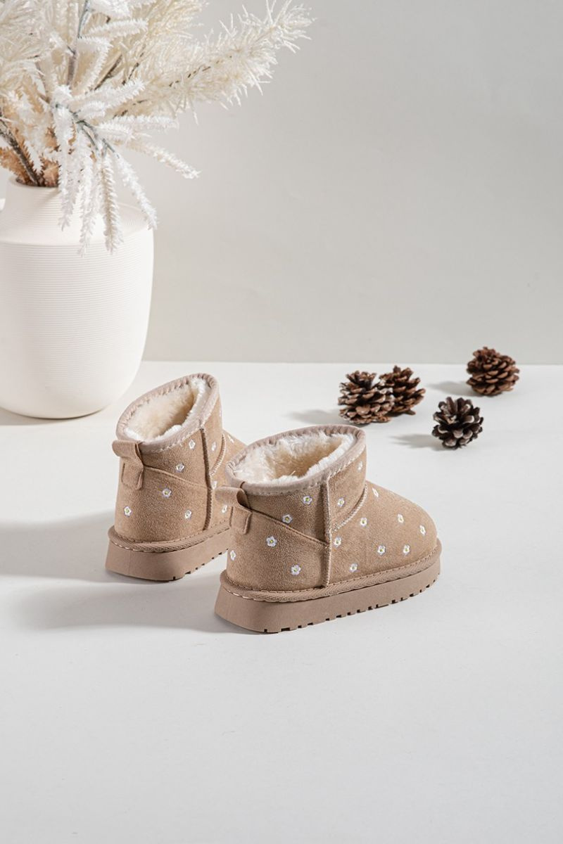 Śniegowce Dziecięce Ozdobione Kwiatuszkami Beżowe Gracina