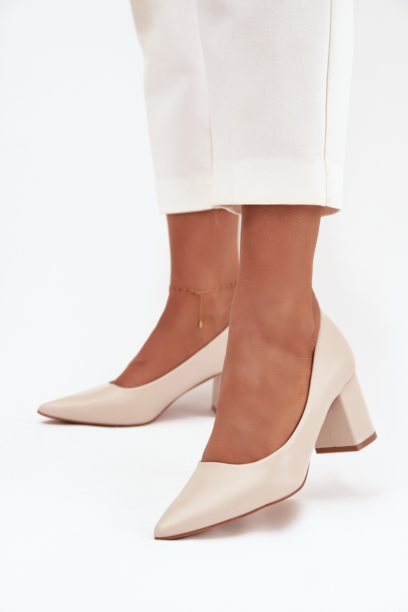 Czółenka Na Słupkowym Obcasie Ze Szpiczastymi Noskami Jasnobeżowe Ryvessa