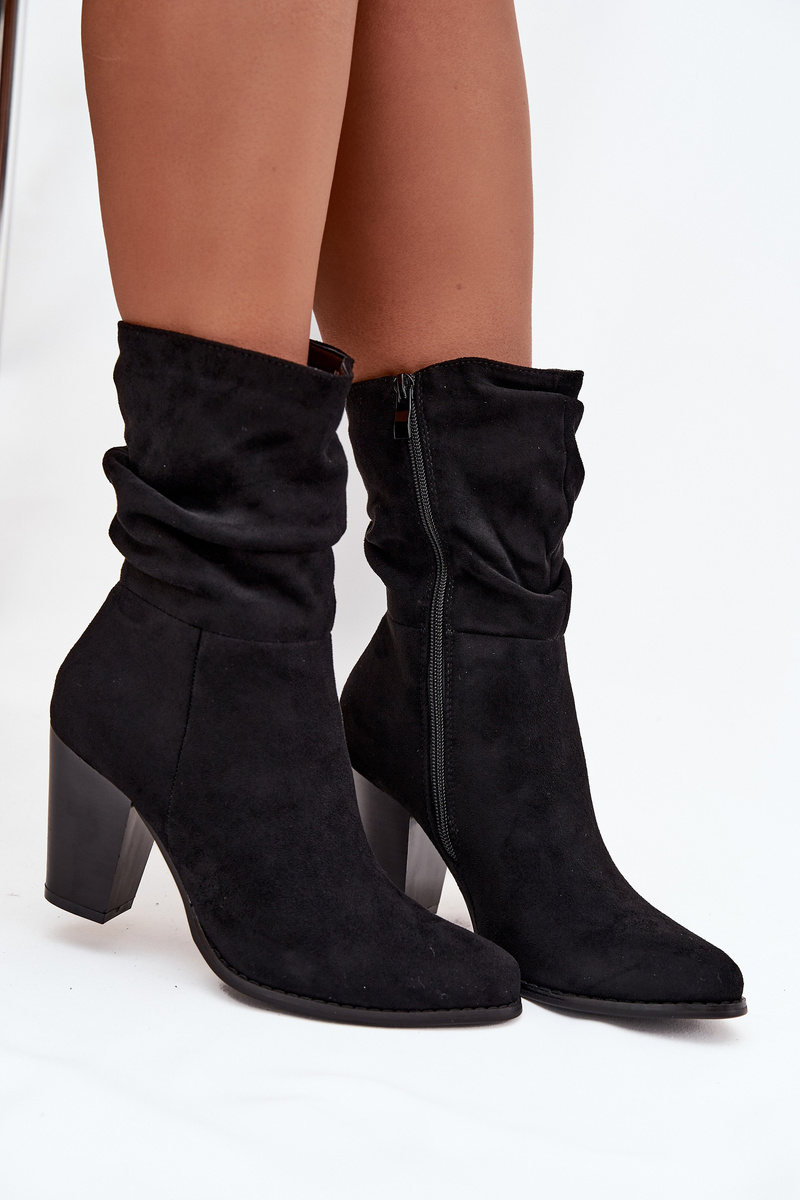 Botki Damskie Na Słupku Z Marszczeniem Czarne Jovessa