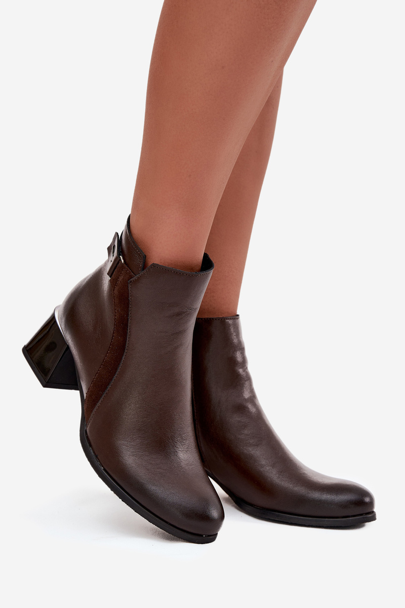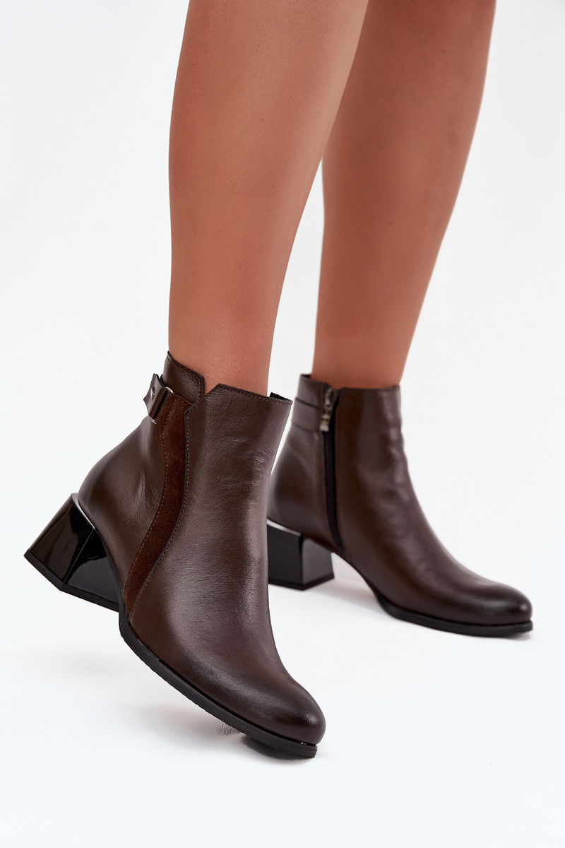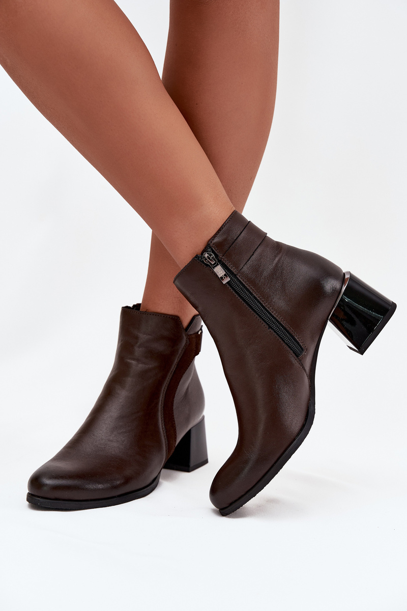 Skórzane Botki Damskie Na Obcasie Ocieplane Zazoo 60563 Czekoladowe