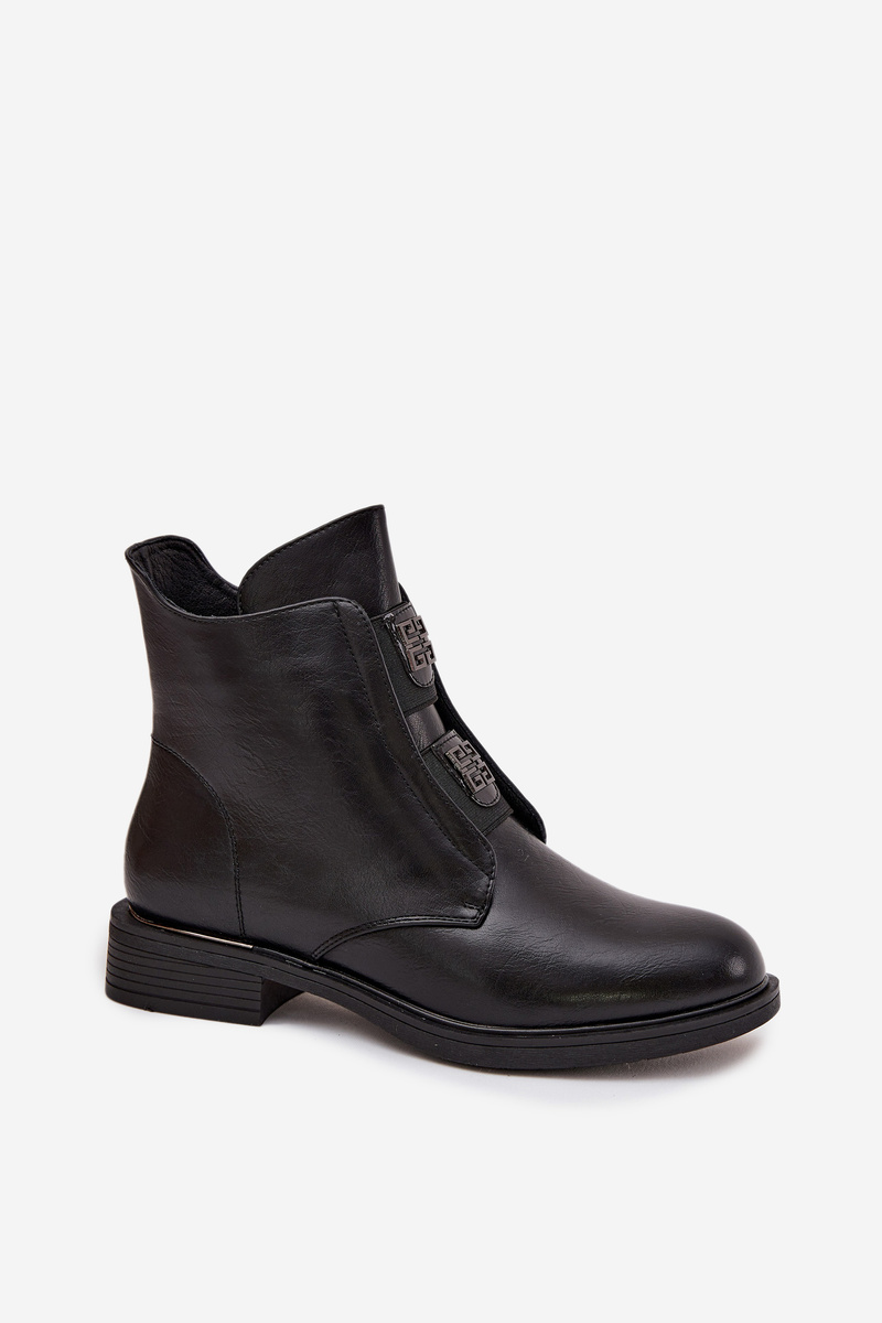 Botki Damskie Ocieplane Na Niskim Obcasie Z Ozdobami Czarne Tavressa