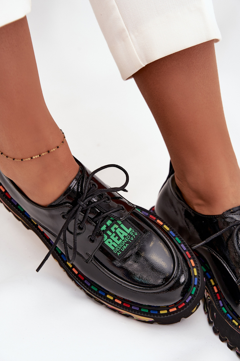 Półbuty damskie marki Artiker wykonane z naturalnej, lakierowanej skóry to elegancka propozycja w nowoczesnym wydaniu. Osadzone na platformie z płaskim obcasem gwarantują wygodę i stabilność podczas noszenia. Model sznurowany. To obuwie, które doskonale sprawdzi się zarówno w codziennych, jak i bardziej eleganckich stylizacjach. Przy wyborze rozmiaru prosimy sugerować się tabelą rozmiarów.