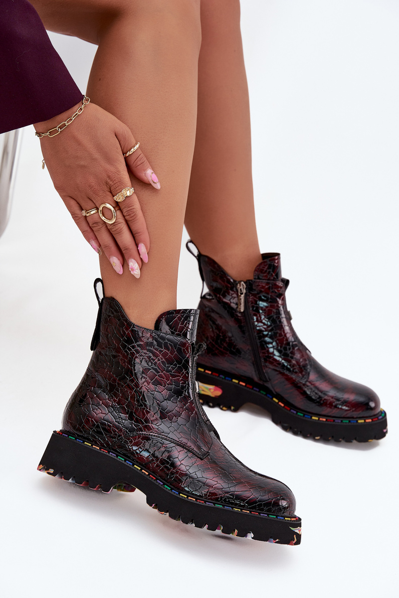 Lakierowane Botki Damskie Z Naturalnej Skóry Ocieplane Artiker 57C0165 Bordowe
