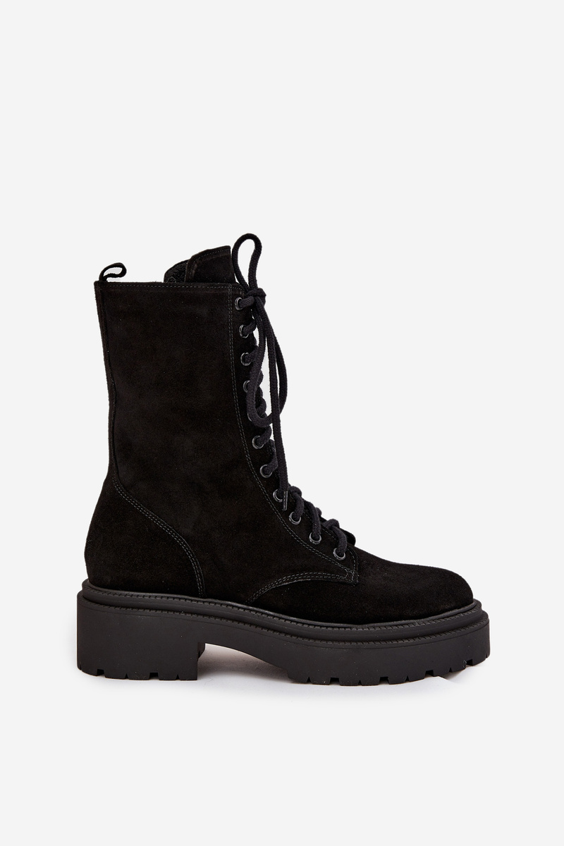 Botki Workery Damskie Z Naturalnego Zamsz Ocieplane Zazoo 4213 Czarne
